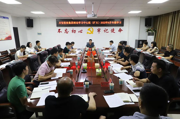 8月30日,萬(wàn)寶投資集團(tuán)黨委書(shū)記、董事長(zhǎng)陽(yáng)文林主持召開(kāi)理論學(xué)習(xí)中心組(擴(kuò)大)2022年8月專(zhuān)題學(xué)習(xí)會(huì)議,總經(jīng)理徐業(yè)波,副總經(jīng)理謝緯,黨委委員、紀(jì)委書(shū)記葛旭華,各部室、子公司負(fù)責(zé)人以及主管以上全體人員參加。