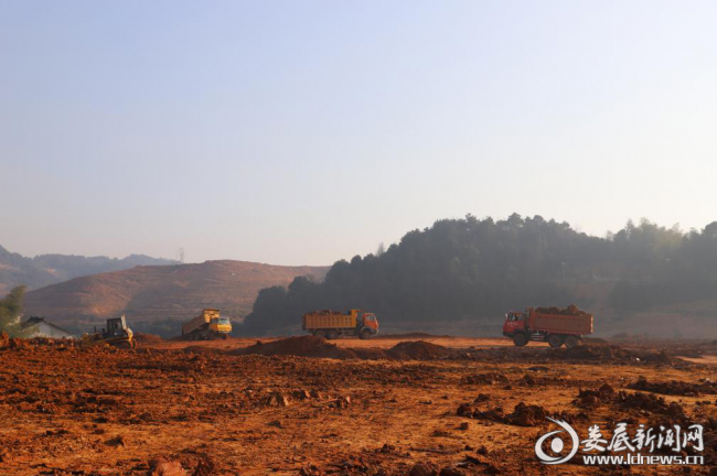 (1月29日,萬寶新區(qū)豐園安置基地,運輸土石方的卡車來往奔跑,一片繁忙)